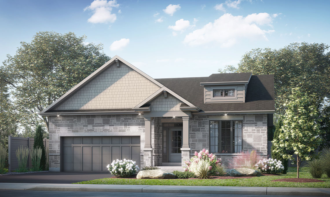 The Overlea, an open concept bungalow featuring 1,850 sq/ft, 3 bedrooms and 2 bathrooms. Enjoy the oversized kitchen with ample counter-space and pantry, overlooking the living and dining rooms. Convenient main floor laundry. The primary bedroom offers a walk-in closet and luxury 5-piece ensuite with soaker tub and tiled shower. The Overlea from CaraCo, a well thought-out bungalow with just the right amount of space; make it your own with one of two available craftsman inspired exterior facades.