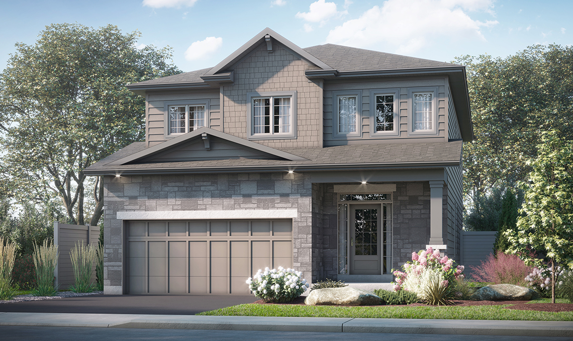The Newington, an open concept two storey featuring 2,600 sq/ft, 4 bedrooms and 2.5 baths. Bright living room with gas fireplace, den, formal dining room and spacious kitchen with walk-in pantry and breakfast nook. Convenient second floor laundry and primary bedroom with walk-in closet and luxury 5-piece ensuite with soaker tub. A well thought-out two storey home with just the right amount of space; make it your own with one of two available craftsman inspired exterior facades.