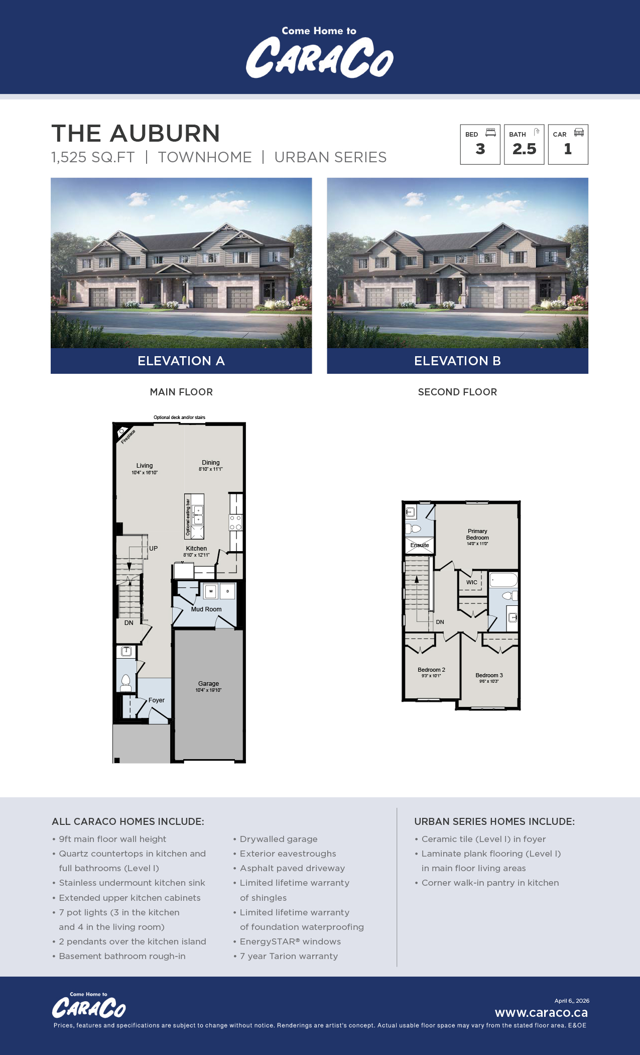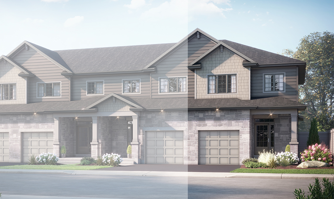 Download Brochure (863.28 KB)The Auburn, an open concept two storey end-unit townhome featuring 1,525 sq/ft, 3 bedrooms and 2.5 baths. Bright living room adjacent to the spacious kitchen with walk-in pantry and open to the dining room. Convenient main floor laundry. The 2nd floor offers large bedrooms including the primary bedroom with walk-in closet and luxury 4-piece ensuite. A well thought-out two storey townhome with just the right amount of space; make it your own with one of two available craftsman inspired exterior facades.