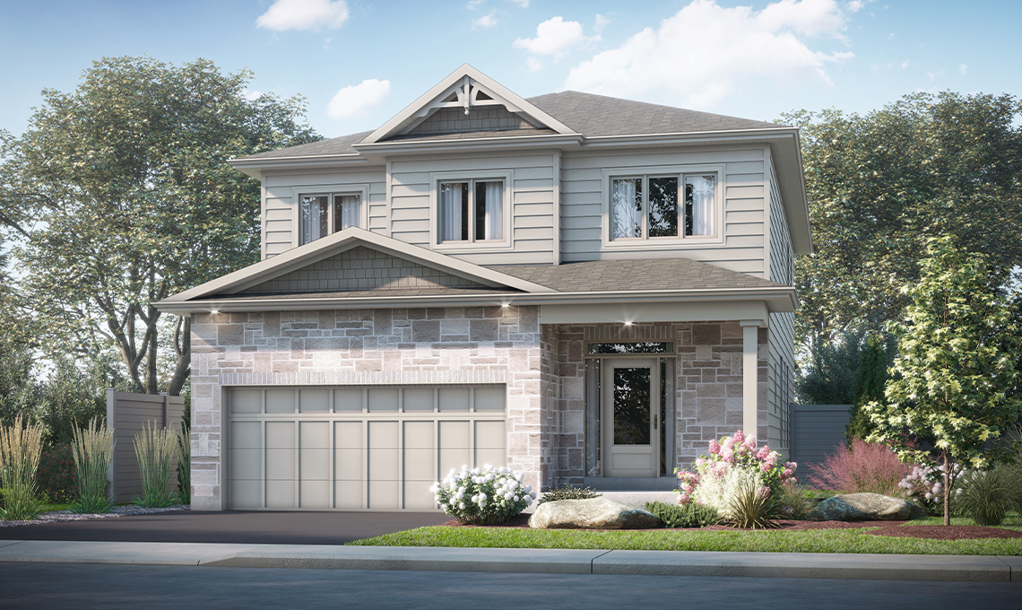 The Newington, an open concept two storey featuring 2,600 sq/ft, 4 bedrooms and 2.5 baths. Bright living room with gas fireplace, den, formal dining room and spacious kitchen with walk-in pantry and breakfast nook. Convenient second floor laundry and primary bedroom with walk-in closet and luxury 5-piece ensuite with soaker tub. A well thought-out two storey home with just the right amount of space; make it your own with one of two available craftsman inspired exterior facades.