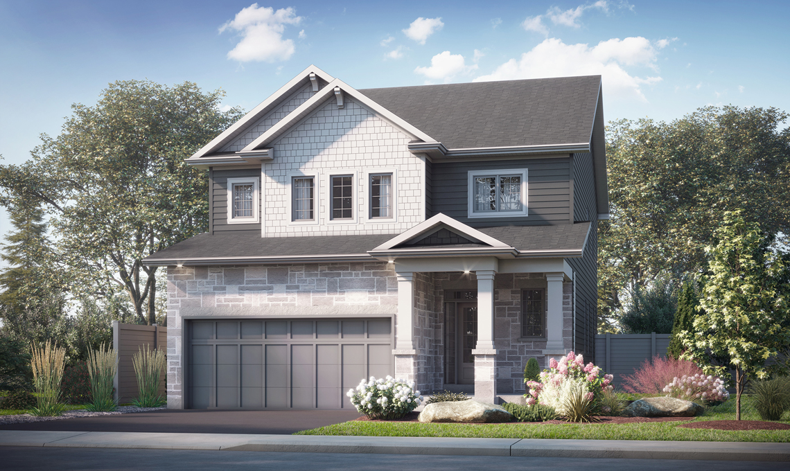 The Parkridge, an open concept two storey featuring 2,540 sq/ft, 4 bedrooms and 2.5 baths. Bright living room with vaulted ceiling plus large dining room and main floor den. A spacious kitchen with a large walk-in pantry. Convenient main floor laundry/mud room and primary bedroom with walk-in closet and luxury 4-piece ensuite. A well thought-out two storey home with just the right amount of space; make it your own with one of two available craftsman inspired exterior facades.